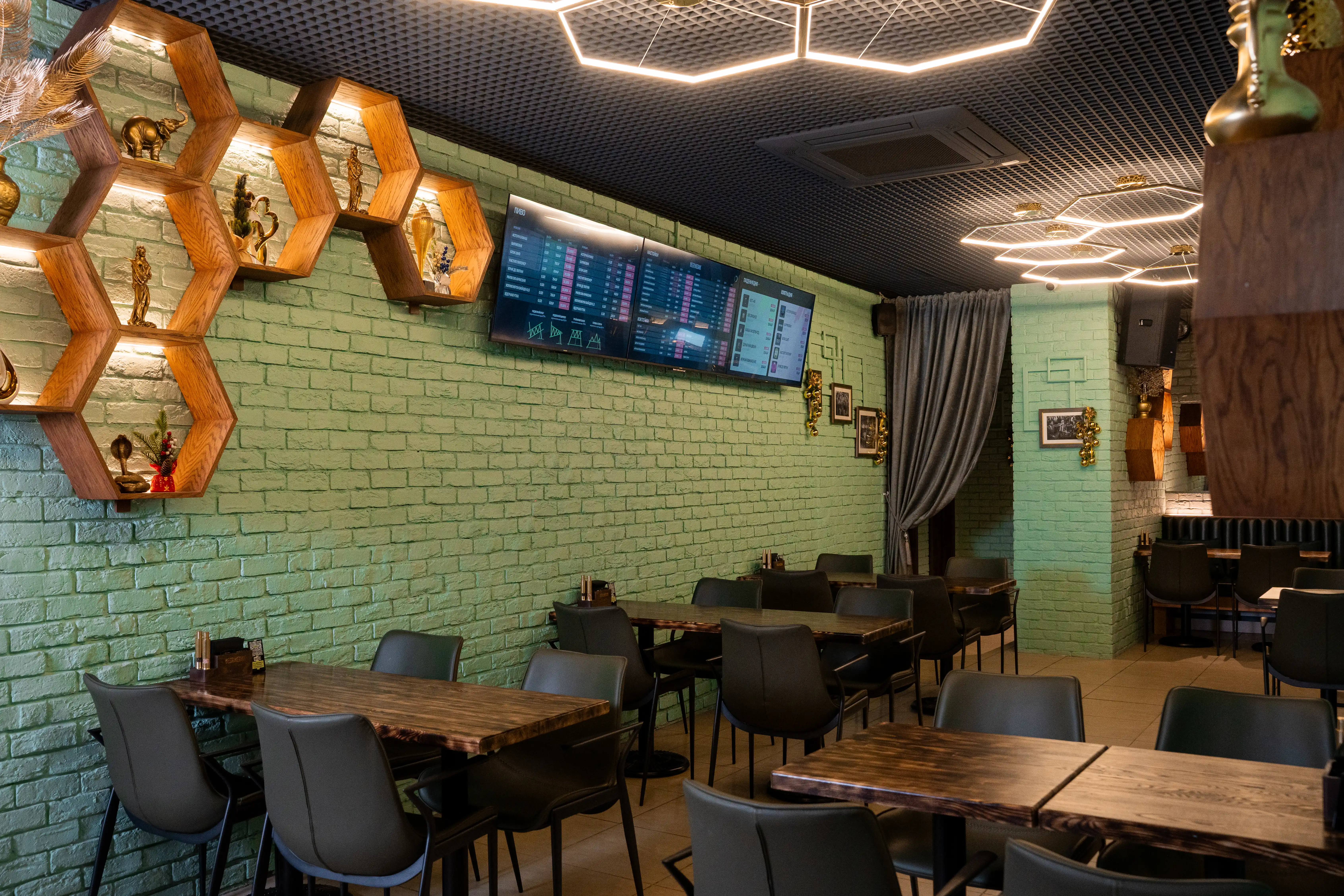 Атмосфера настоящей биржи: большие экраны с котировками, деловой стиль и драйв сделок.